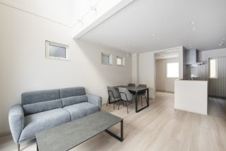 ライトグレーをキーカラーにした優しい風合いと、都会的で洗練されたデザインを併せ持つ住宅。全室オール床暖房完備で冬の暮らしも快適です。